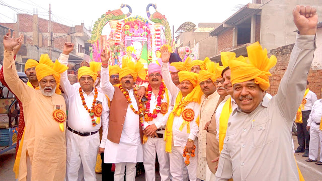 महासभा की 135वी जयंती शोभायात्रा में सैकड़ों की संख्या में माथुर वैश्य समाज उमड़ा